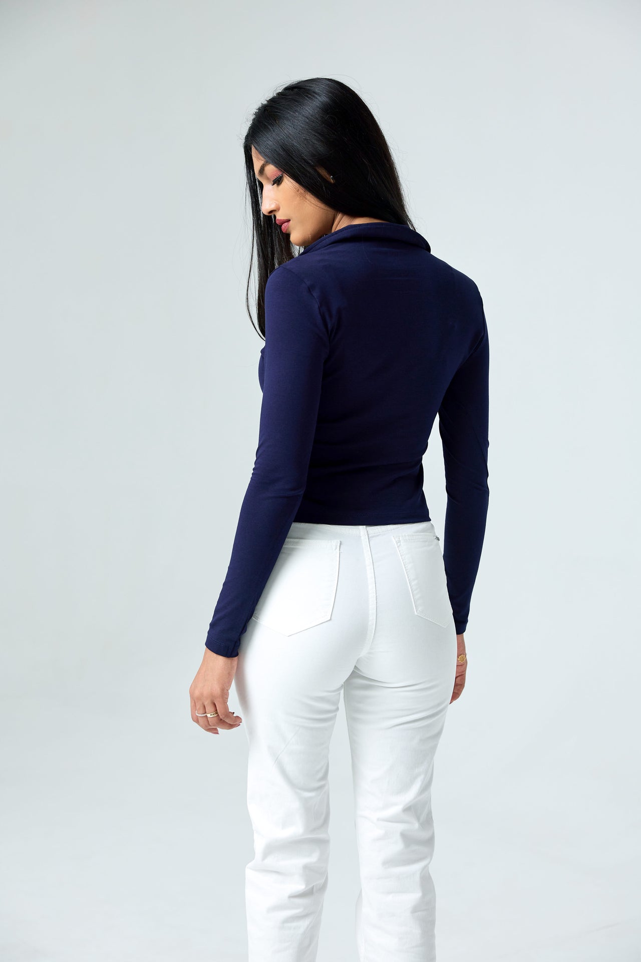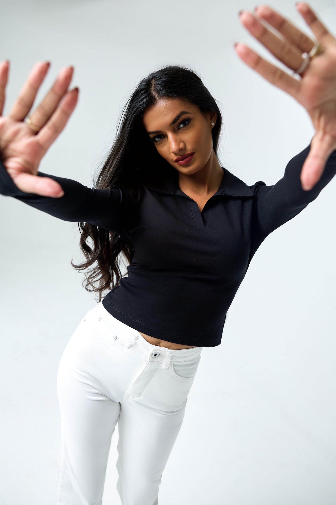Effortless. Chic. Endlessly versatile. The Evi Long Sleeve Polo blends a sleek, fitted silhouette with soft stretch comfort. Featuring a sharp collar and minimal neckline, it’s that modern essential that elevates every casual look—simple.
