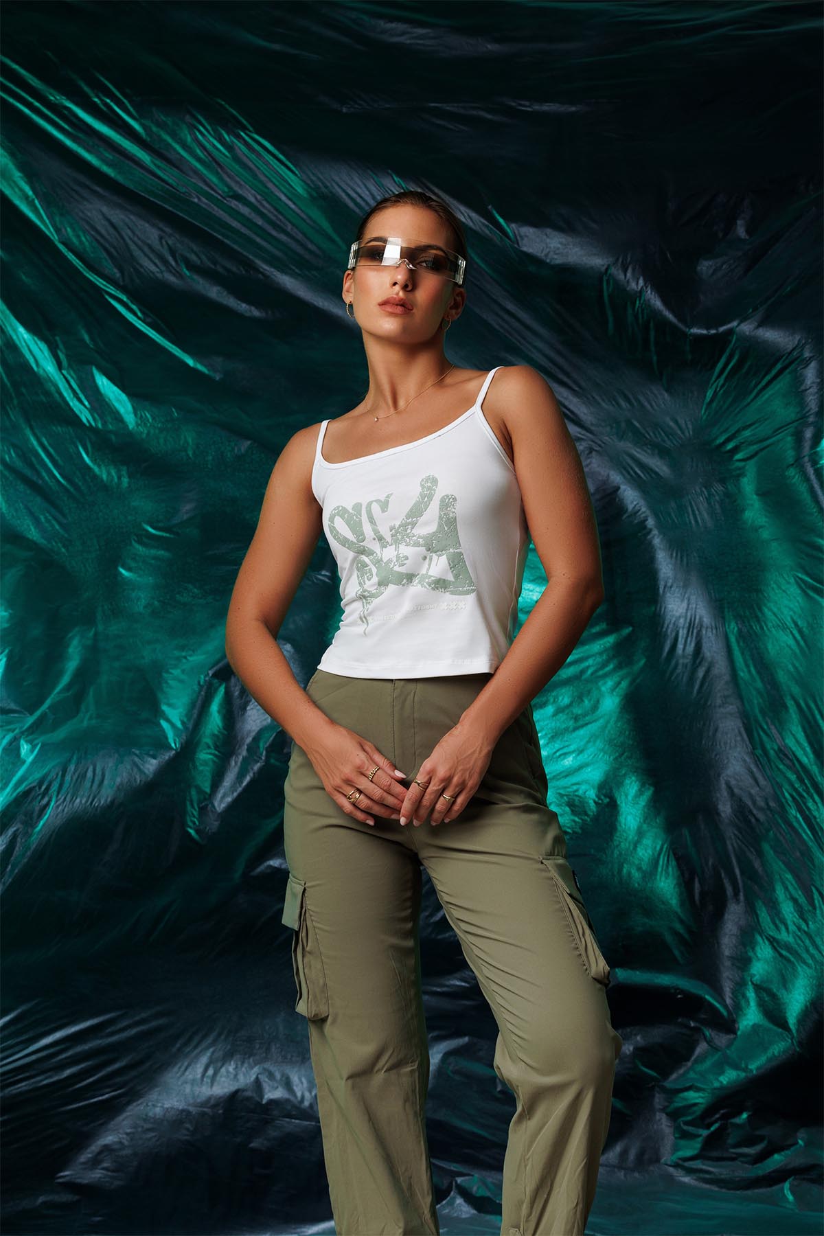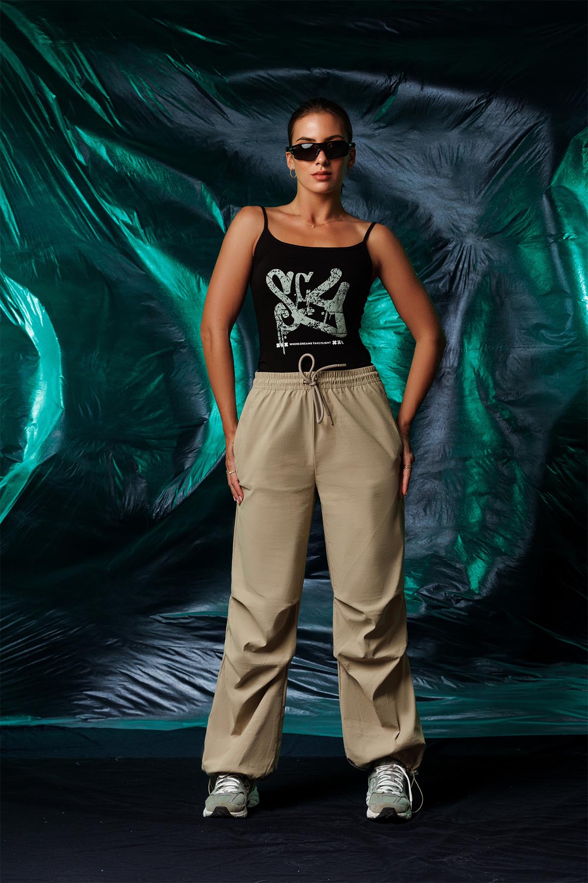 A sleek and versatile spaghetti-strap cami crafted from soft stretch cotton, designed for a flattering, body-hugging fit. Featuring a bold distressed “SCY” graphic and the phrase “Where Dreams Take Flight” across the front, this cami blends streetwear flair with Y2K attitude.